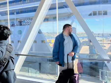 Vid 15.15 gick vi på båten och 16.45 avgick den mot Finland.