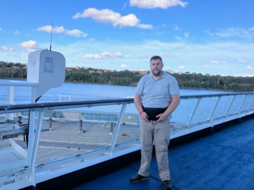 Sedan gick vi och la oss, vi var båda lite trötta. Det blåste ganska mycket när vi skulle gå och lägga oss ca 10 meter per sekund. Under natten stannar båten i Mariehamn på Åland och lämnar och plockar upp folk. Men det märker man inte av då vi sov.
