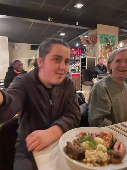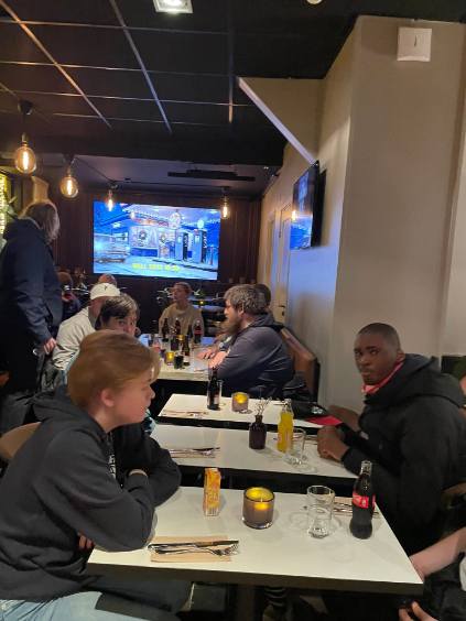 Förra året 2025 var ett mycket trevligt år med mycket handboll. Vi avslutade året med mat på Sallys, och vi fick var sin tröja. Det var kul och mycket folk.