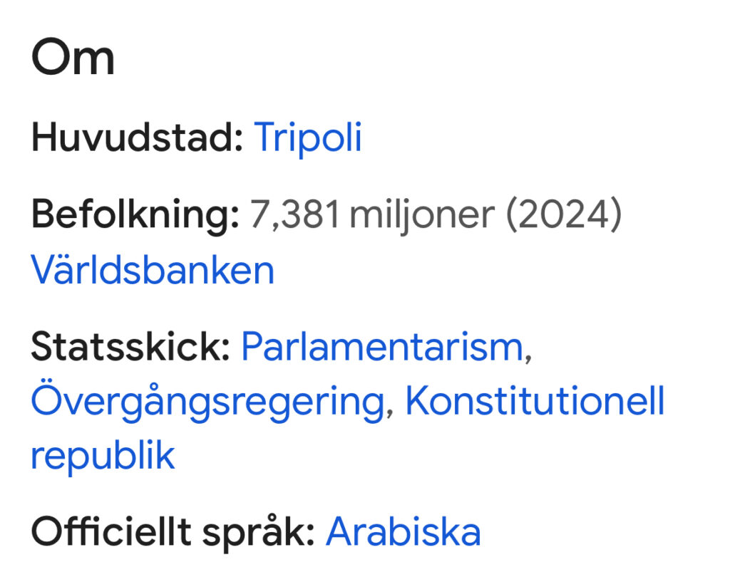 Libyen blev självständiga från Italien 1951. Huvudstaden heter Tripoli. Dom pratar arabiska.